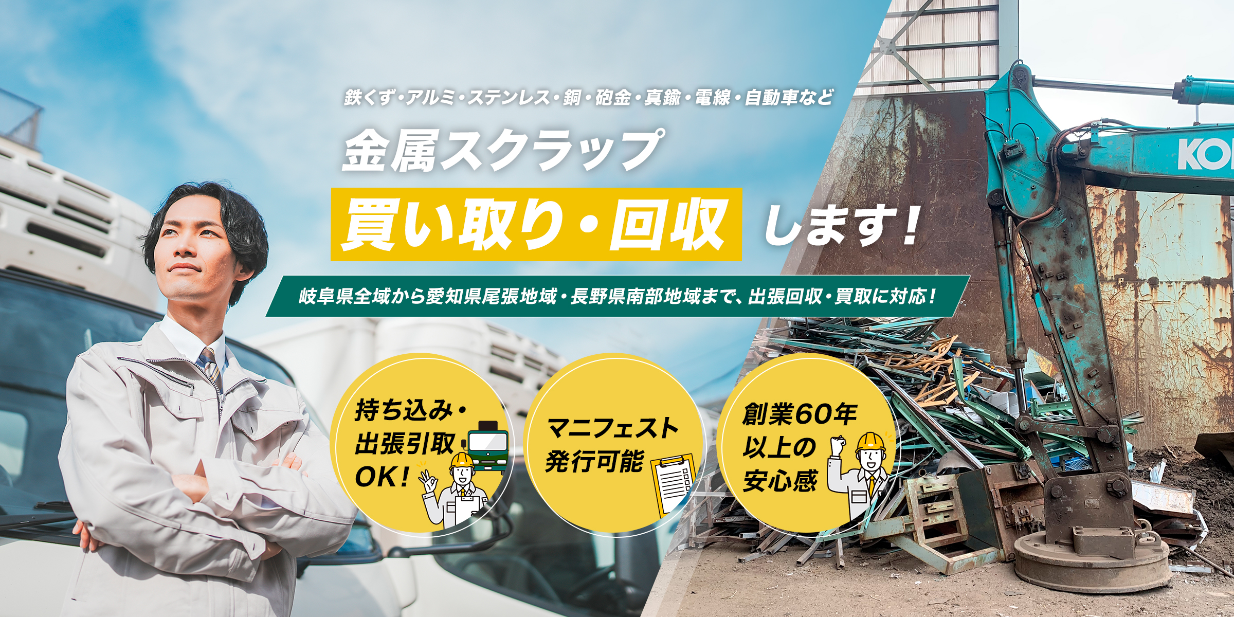 岐阜県から愛知県尾張地域・長野県南部まで、金属スクラップ・鉄くずの買取は、「創業60年以上の丸も森商店」にお任せください!
